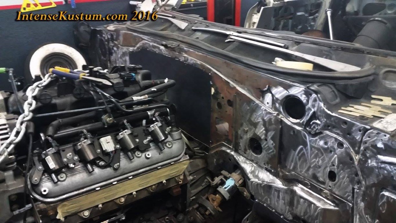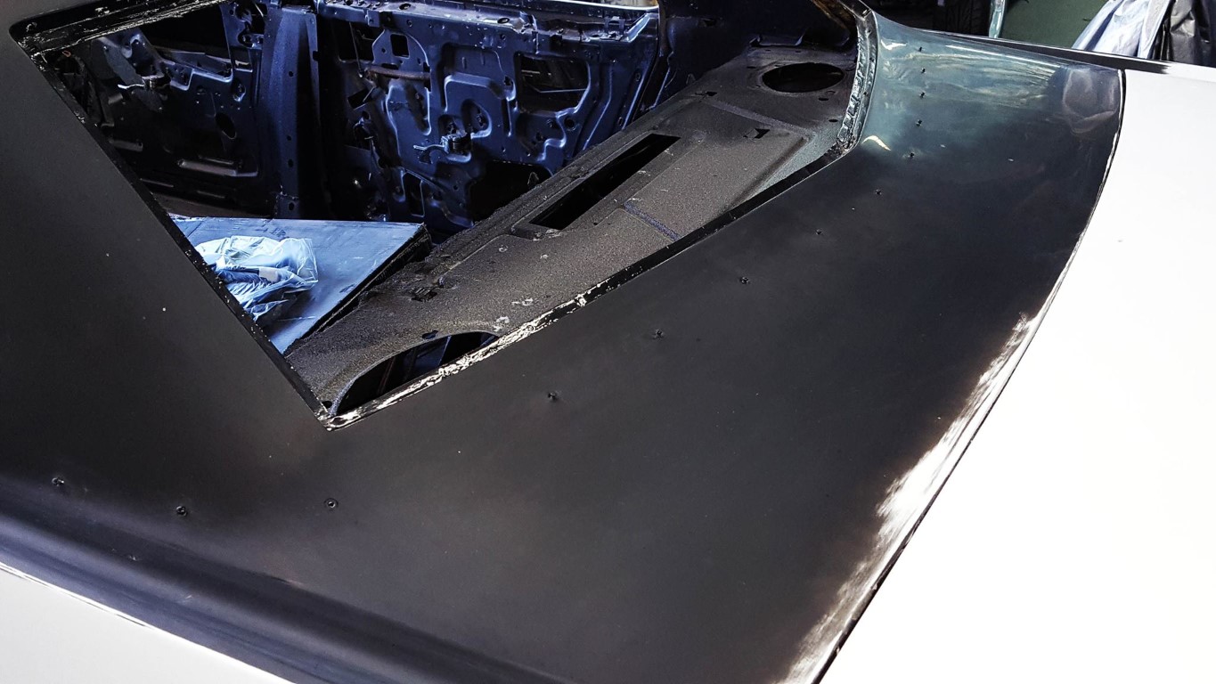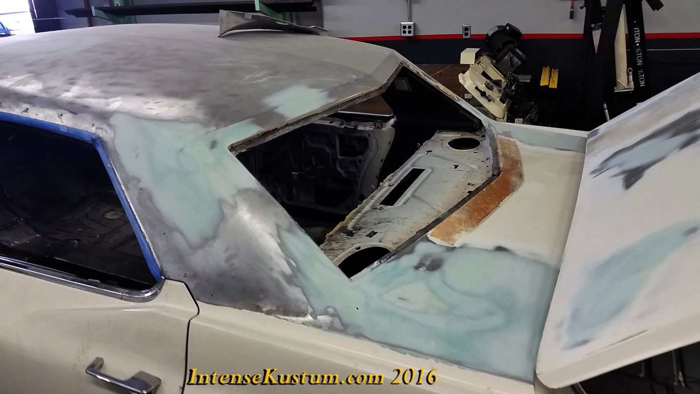and firewall. We removed the vinyl roof and laid down a custom