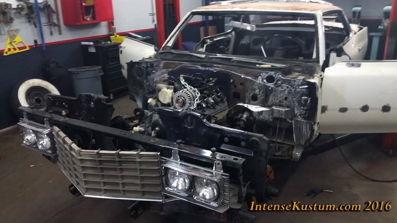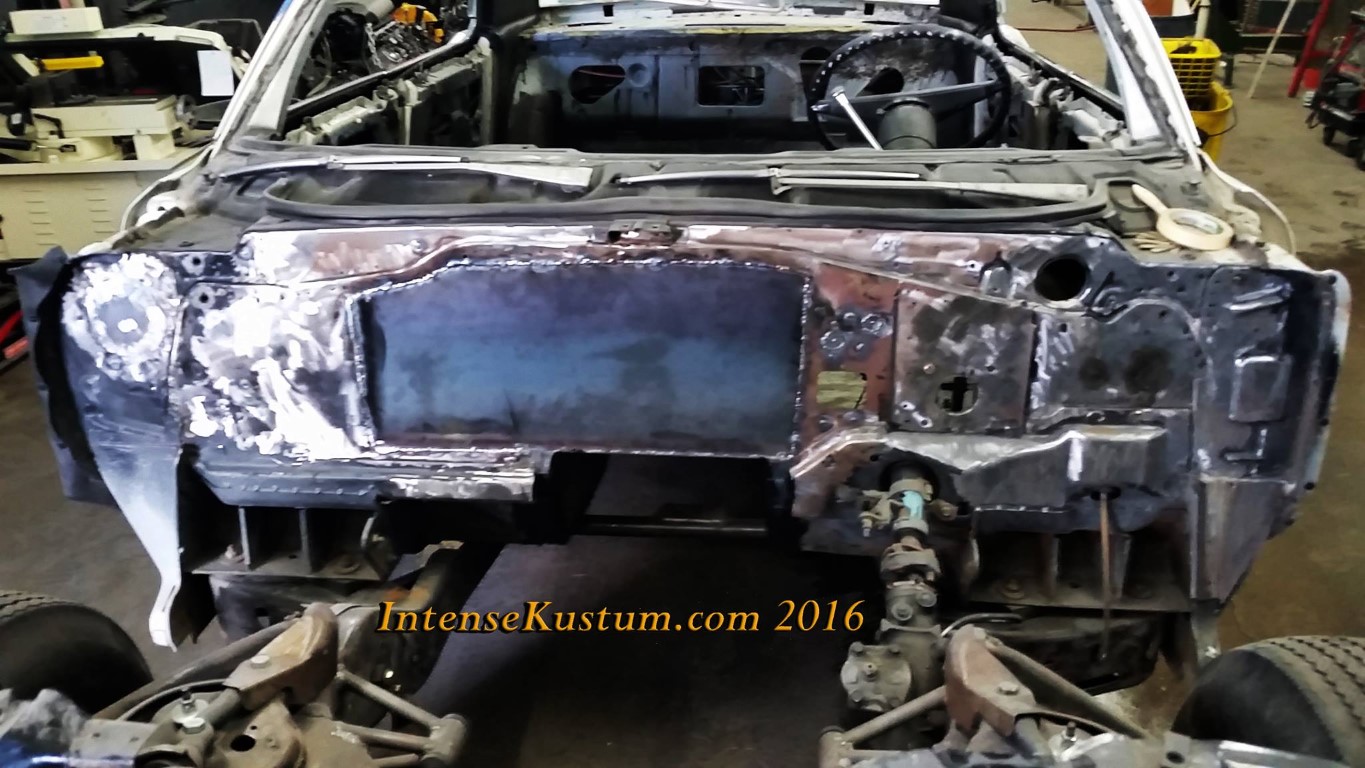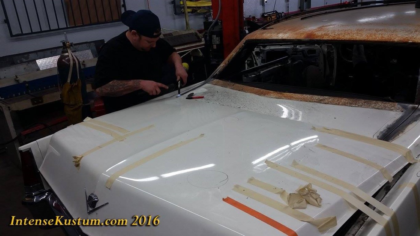 and firewall. We removed the vinyl roof and laid down a custom